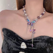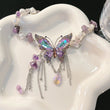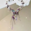 Purple necklace, butterfly necklace, blue necklace, silver necklace, dreamy necklace, fairy core accessories, gifts for girls, Halloween accessories, Halloween jewellery