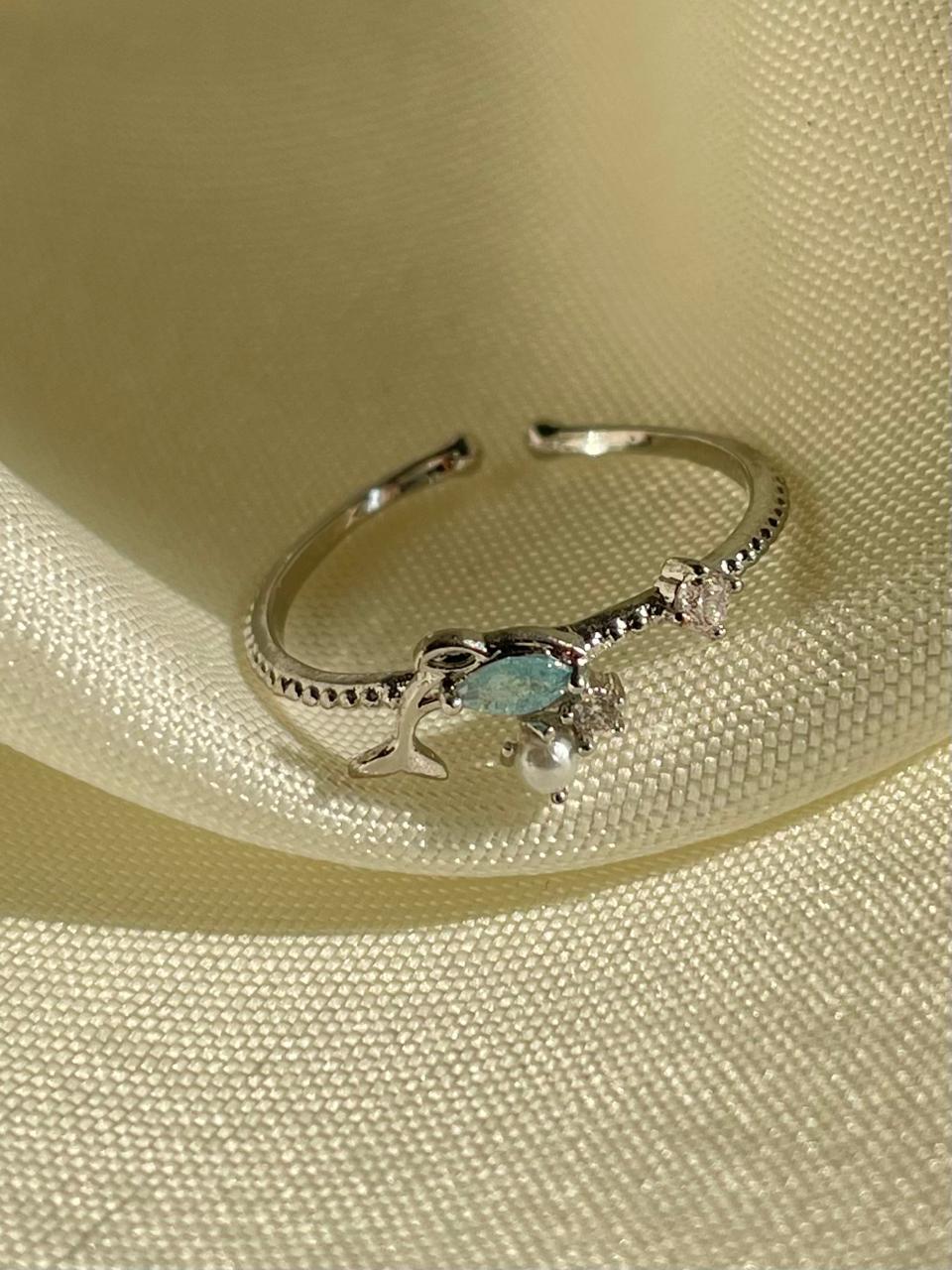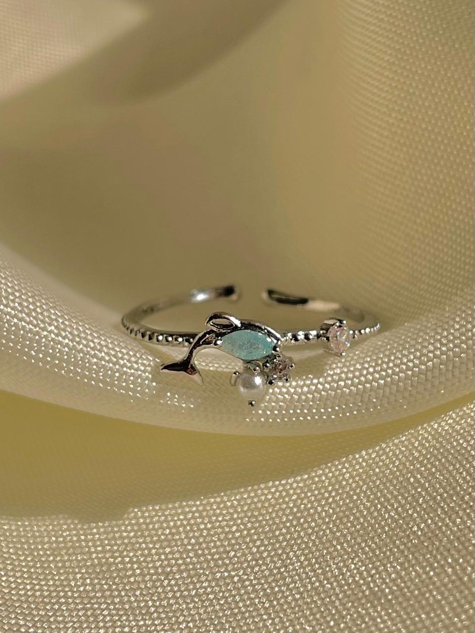 Pearl Ring, silver Rings, fish Ring, blue ring, minimal rings, princess rings, dreamy ring