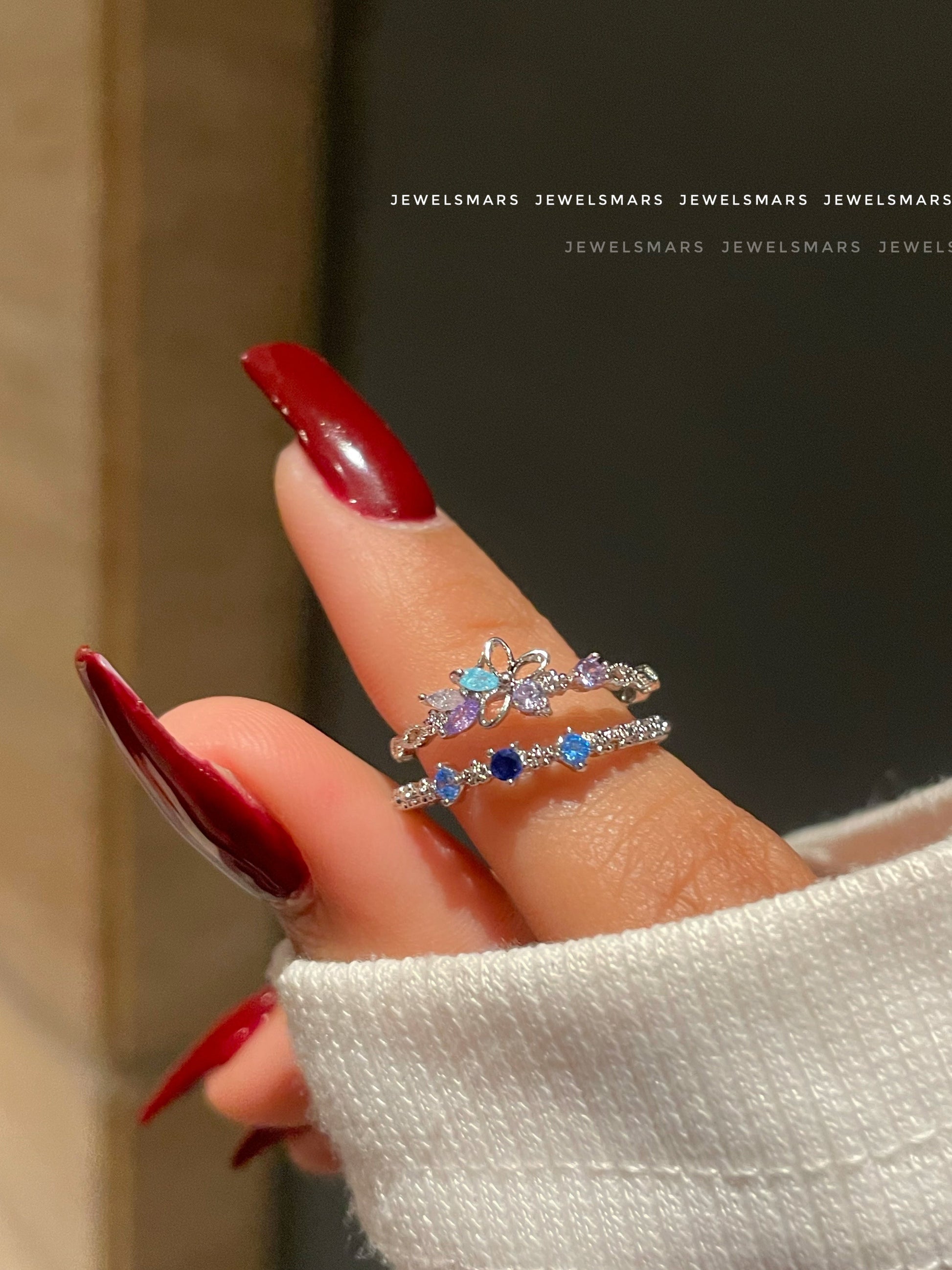 Minimal Ring, dreamy Ring, blue ring, blue aesthetic ring, layered ring, butterfly ring